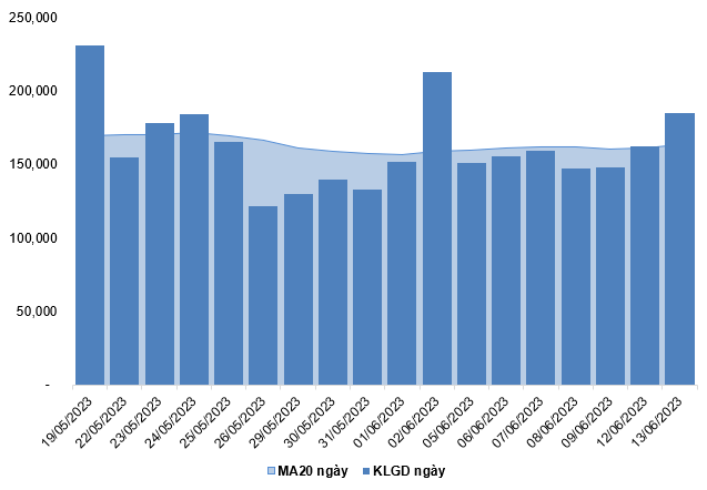 Khối lượng và giá trị giao dịch lần lượt tăng 13.56% và 14.97% so với phiên ngày 12/06/2023. Cụ thể, khối lượng giao dịch F2306 tăng 9.45% với 172,871 hợp đồng được khớp lệnh. Khối lượng giao dịch của F2307 đạt 11,647 hợp đồng, tăng 158.59%