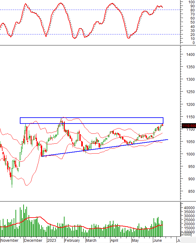 Trong phiên giao dịch ngày 14/06/2023, VN30-Index giảm điểm sau khi test vùng 1,120-1,145 điểm (tương đương đỉnh cũ tháng 12/2022 và 01/2023) cho thấy lực bán mạnh đang hiện diện tại đây.