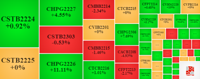 Sắc xanh tập trung tại các nhóm chứng quyền HPG, VHM, VPB và VRE với mức tăng trên dưới 10%. Ở chiều ngược lại, áp lực điều chỉnh rõ nét xuất hiện tại các chứng quyền MBB, VNM và MWG với mức giảm nhẹ quanh 5%. Các nhóm chứng quyền còn lại như VIB, TCB, STB, ACB và FPT phân hóa với diến biến tăng/giảm/tham chiếu đan xen.