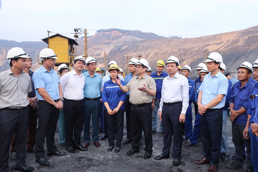 Kiểm tra tình hình khai thác than; thăm hỏi, tặng quà công nhân đang làm việc tại công trường, Thủ tướng Chính phủ Phạm Minh Chính hoan nghênh tinh thần làm việc của cán bộ, công nhân Công ty than Hà Tu luôn nỗ lực phấn đấu hoàn thành kế hoạch sản xuất.