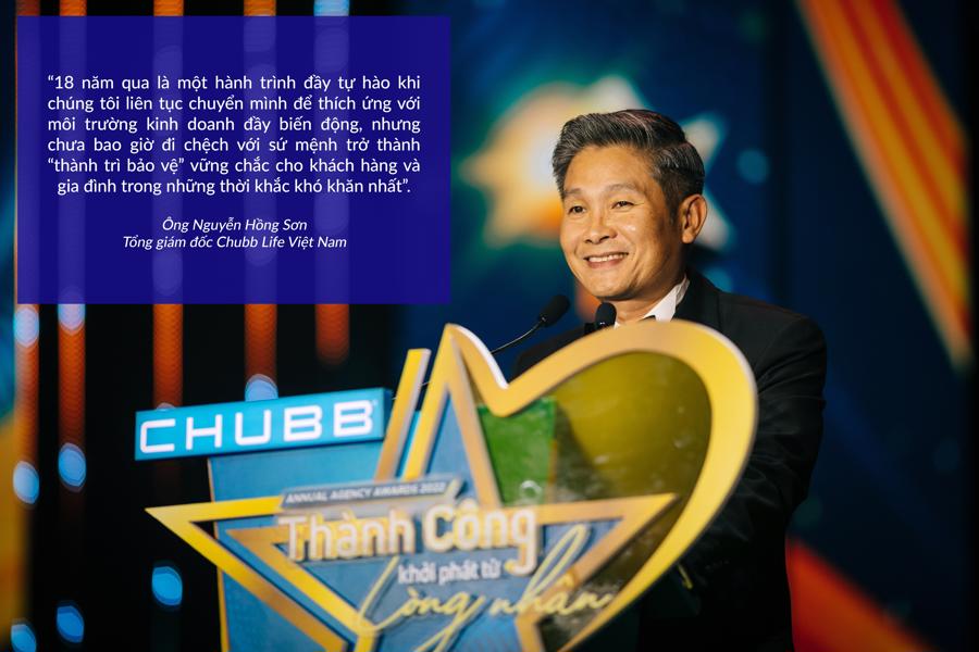 Theo ông Nguyễn Hồng Sơn - Tổng giám đốc Chubb Life Việt Nam, nền tảng tài chính vững mạnh, kinh nghiệm chuyên môn xuất sắc, lịch sử phát triển lâu đời hơn 231 năm trên toàn cầu cùng sự am hiểu sâu sắc nhu cầu và văn hóa bản địa, đặc biệt là chiến lược tăng tốc đầu tư vào mảng bảo hiểm nhân thọ tại thị trường châu Á của Chubb Limited là nền tảng thúc đẩy sự phát triến của Chubb Life Việt Nam, mang đến tấm lá chắn vững vàng cho hàng triệu gia đình suốt 18 năm qua.