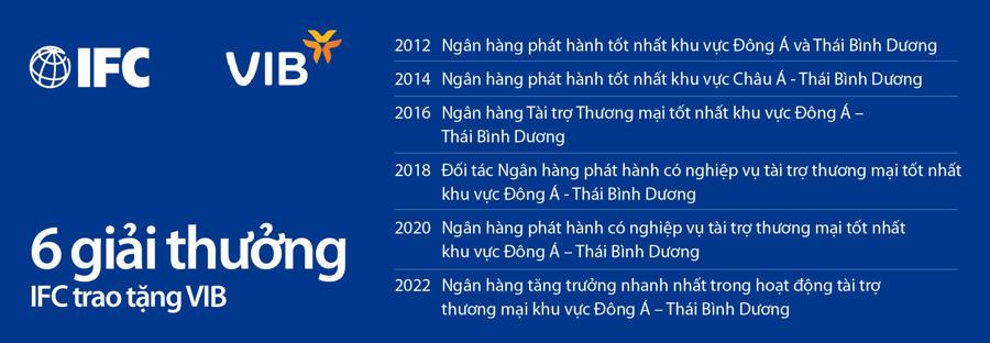 Gần nhất vào tháng 2/2022, VIB nhận giải thưởng Ngân hàng Tăng trưởng Nhanh nhất trong hoạt động tài trợ thương mại khu vực Đông Á và Thái Bình Dương của chương trình. Vừa qua vào tháng 5.2023, IFC cũng chính thức nâng hạn mức tài trợ thương mại, đưa VIB trở thành ngân hàng có hạn mức lớn nhất tại Việt Nam là 200 triệu USD.